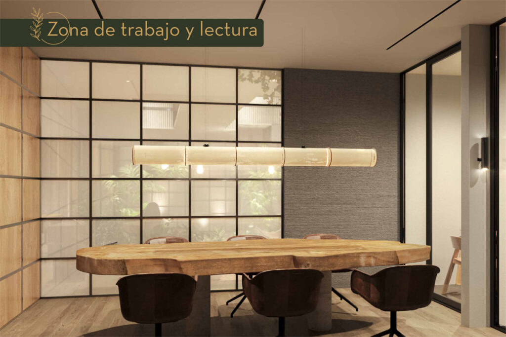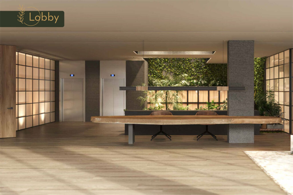 Un ambiente natural y relajante en el corazón del edificio. Disfruta de la armonía entre la arquitectura y la naturaleza en un espacio pensado para el bienestar